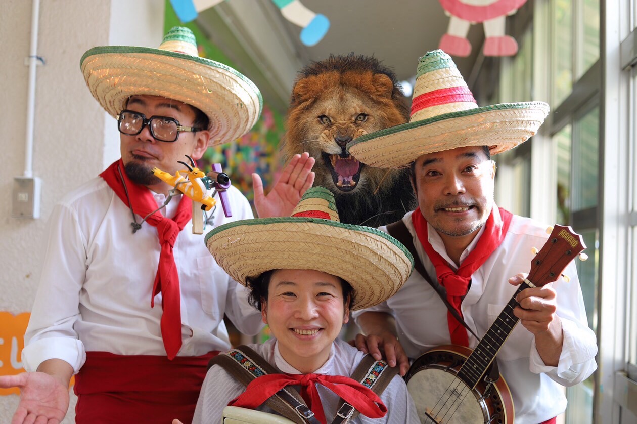 大道芸的音楽団「みにまむす」からやってきた いつでもどこでも賑やかす唄って遊ぶ三人衆。