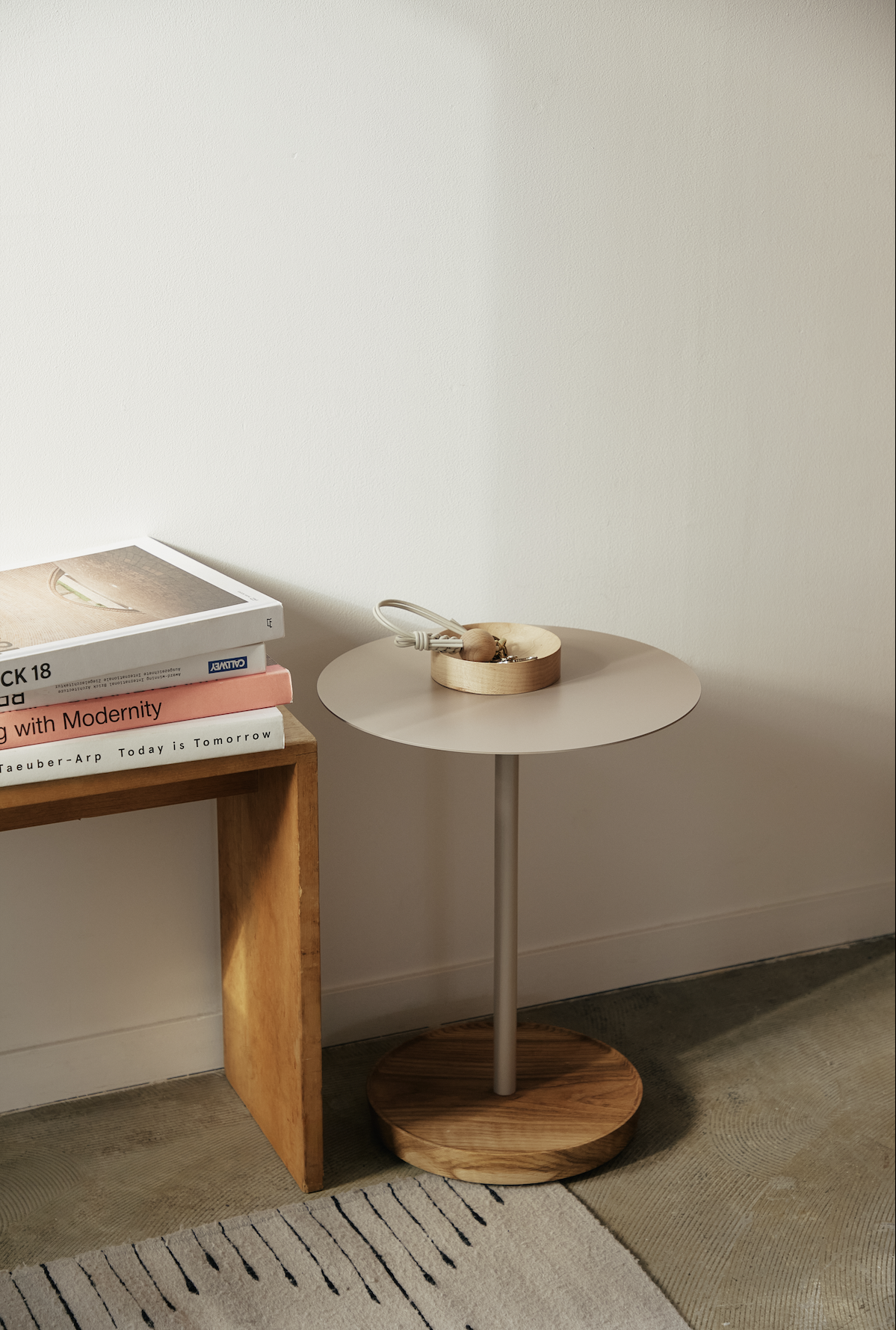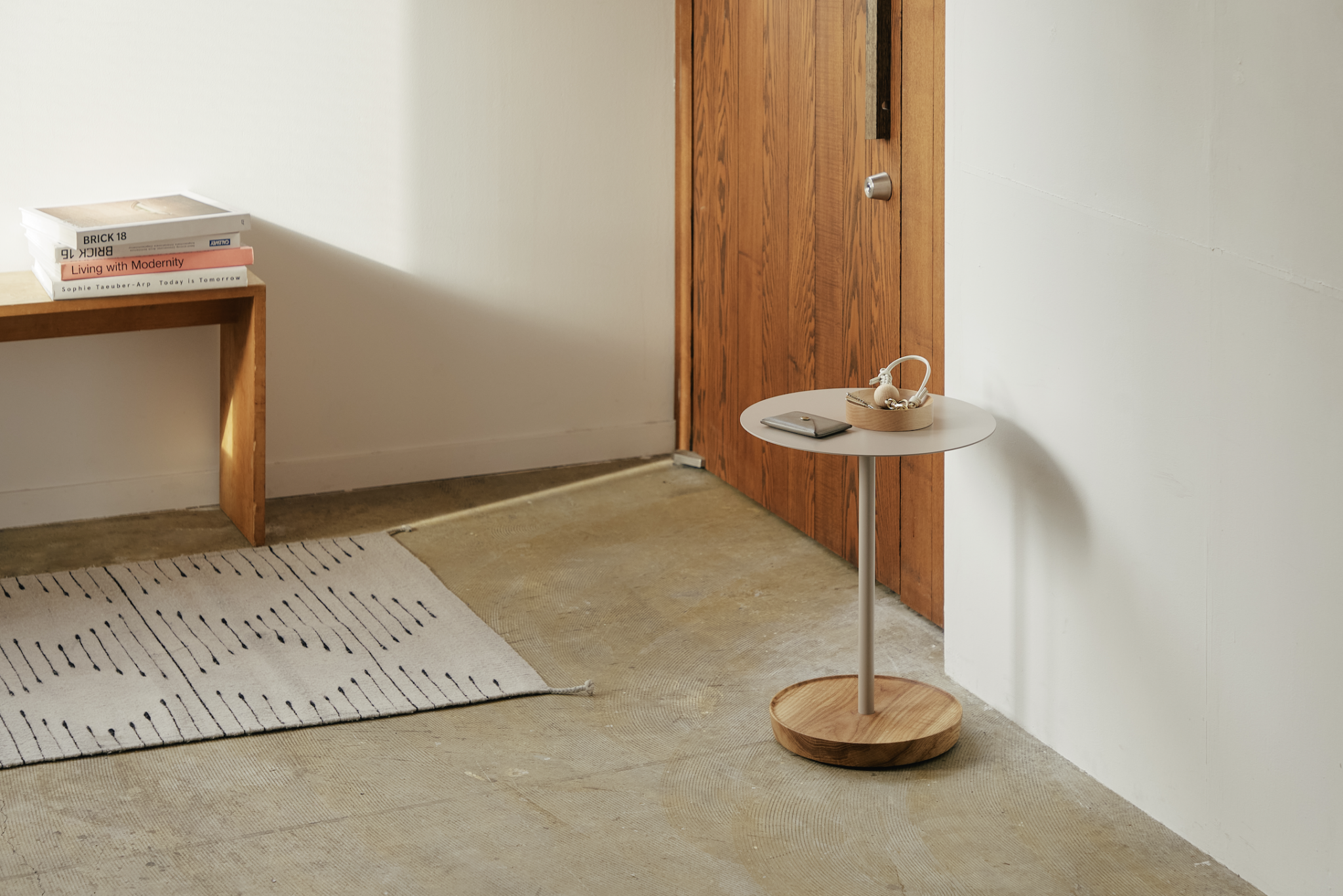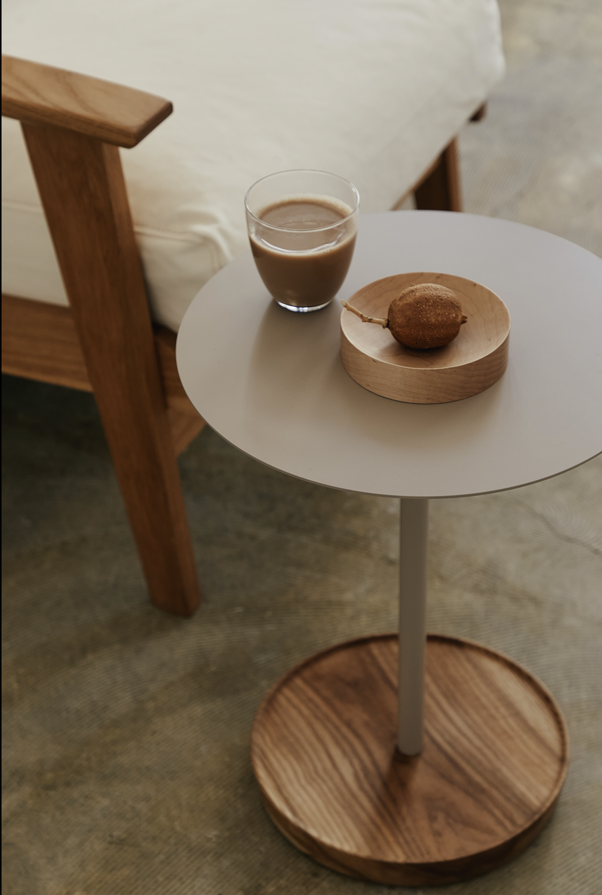 今回、grafの「Side Stand」と「Bau Dana」をベースに、URBAN RESEARCH DOORS 別注カラーを製作しました。柔らかな温かみと、どこか凛としたモダンさを併せ持つ色合いは、装いの延長のように空間へと溶け込み生活の風景をさりげなく整えてくれます。