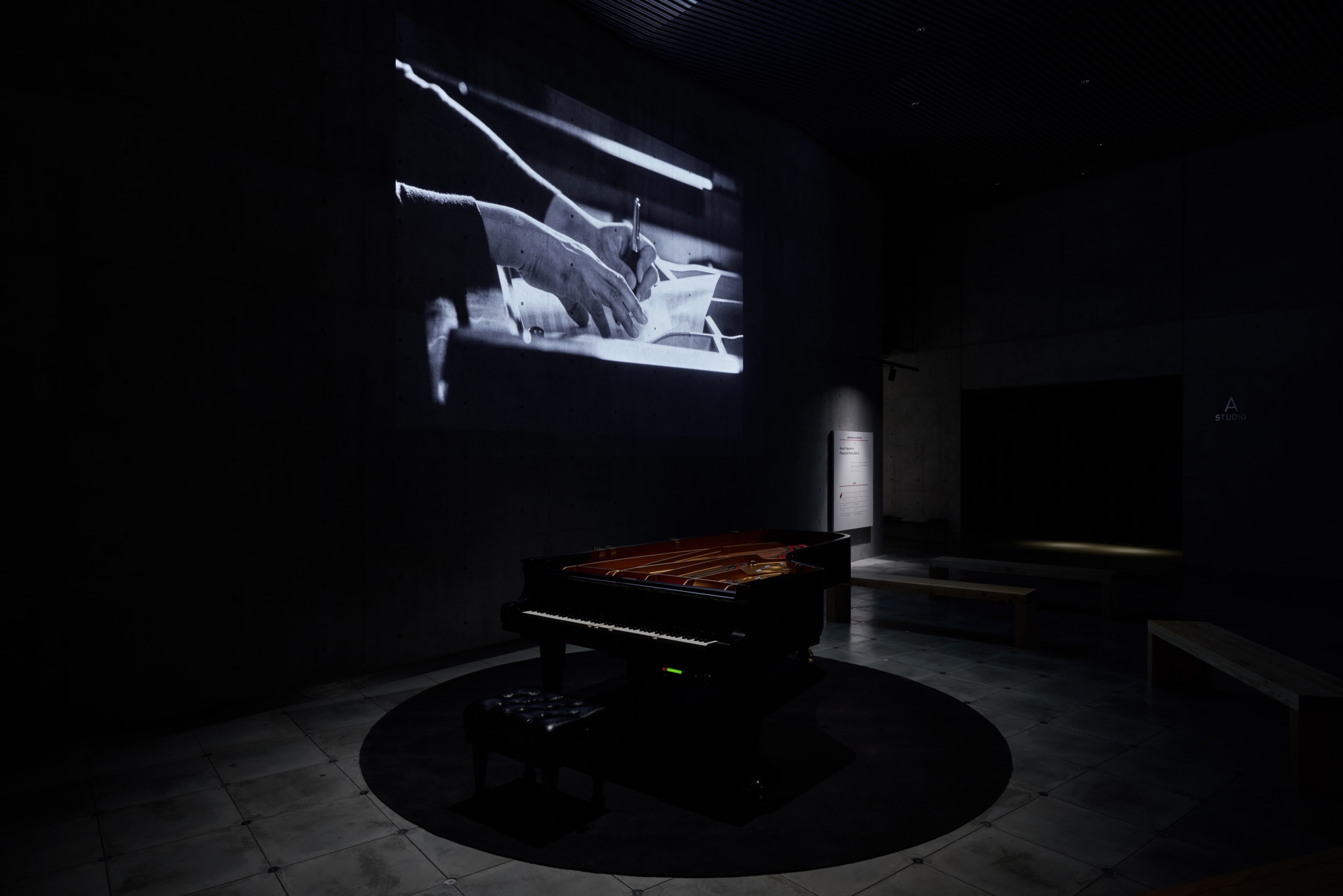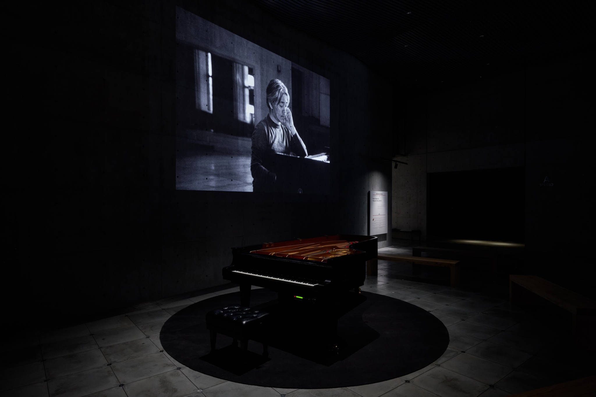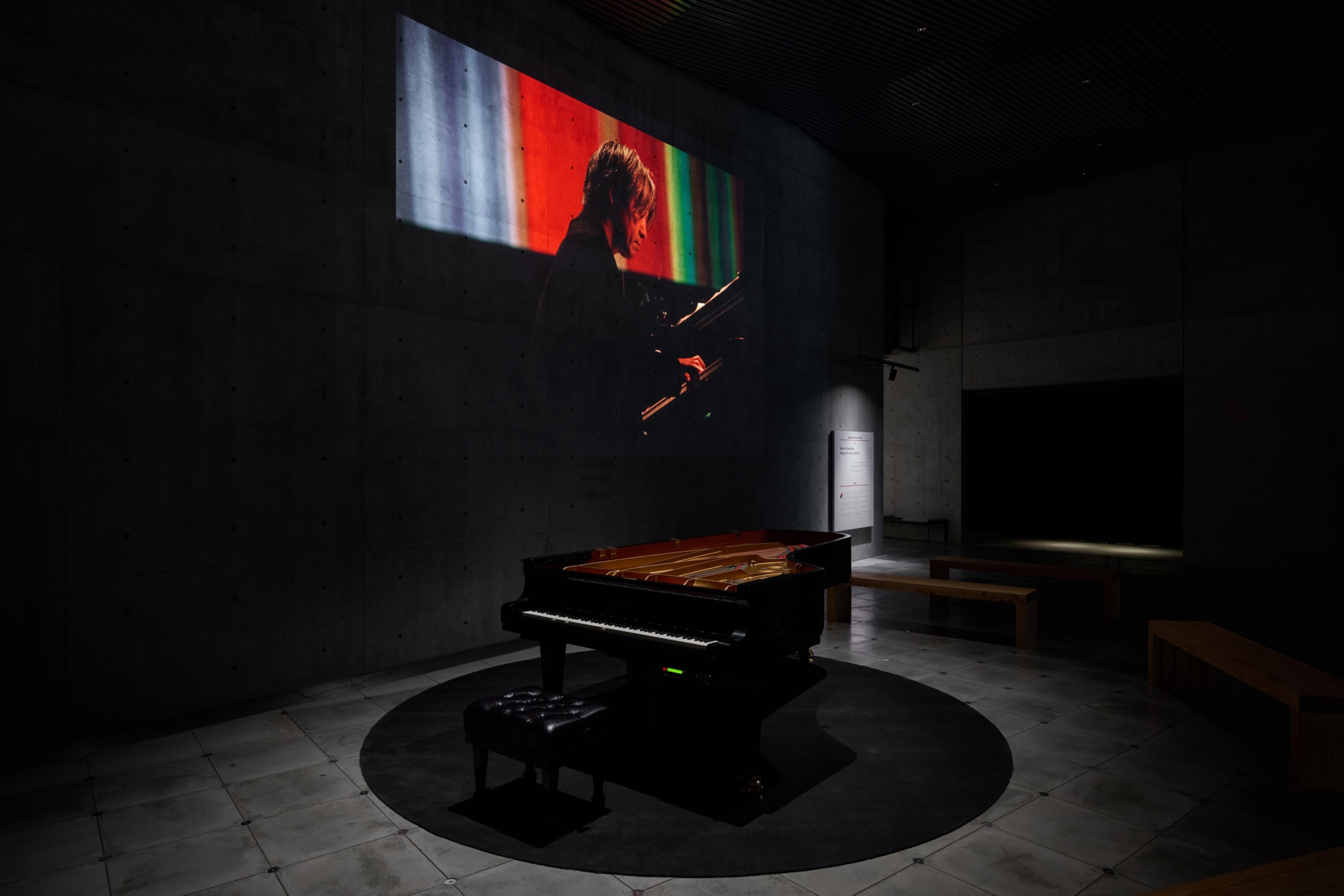 坂本龍一氏から音楽を聴く最高の環境をつくりたいという思いを受け、音の反響を抑えゆったりと心地よく音楽に浸れるように、背をあえて設けずコの字型のシンプルな形状を採用。来場者が音に集中し、ゆっくりと向き合える場を生み出しています。
