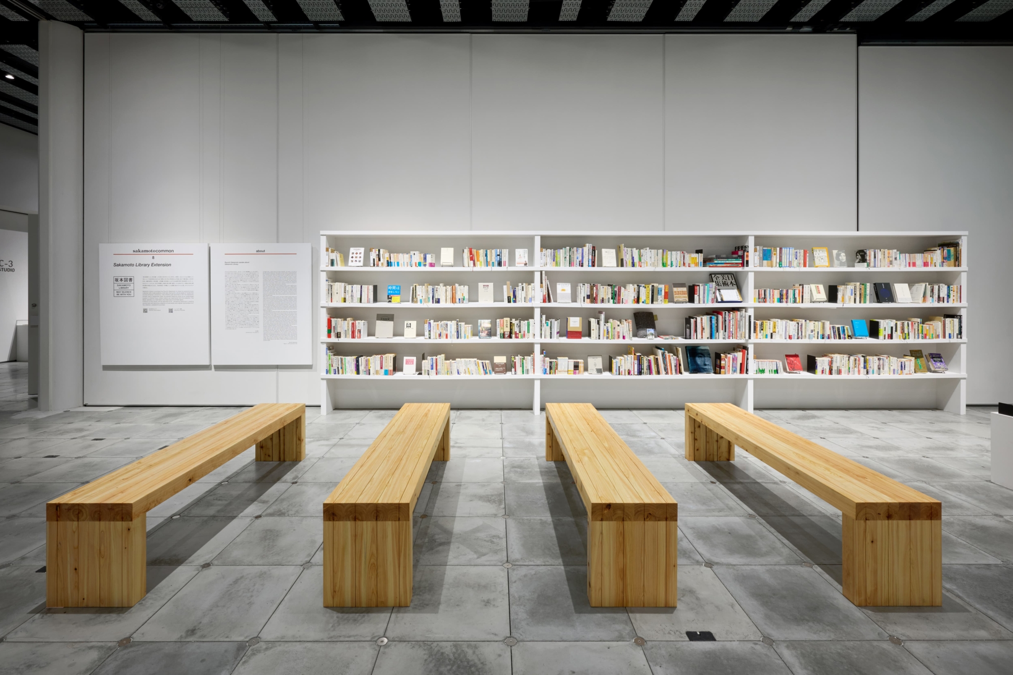 このベンチは、2017年にワタリウム美術館で開催された坂本龍一氏の展覧会「設置音楽展」にあわせてオリジナルで製作したもので、今回は会場の広さにあわせて新たに追加製作し、設置いただきました。