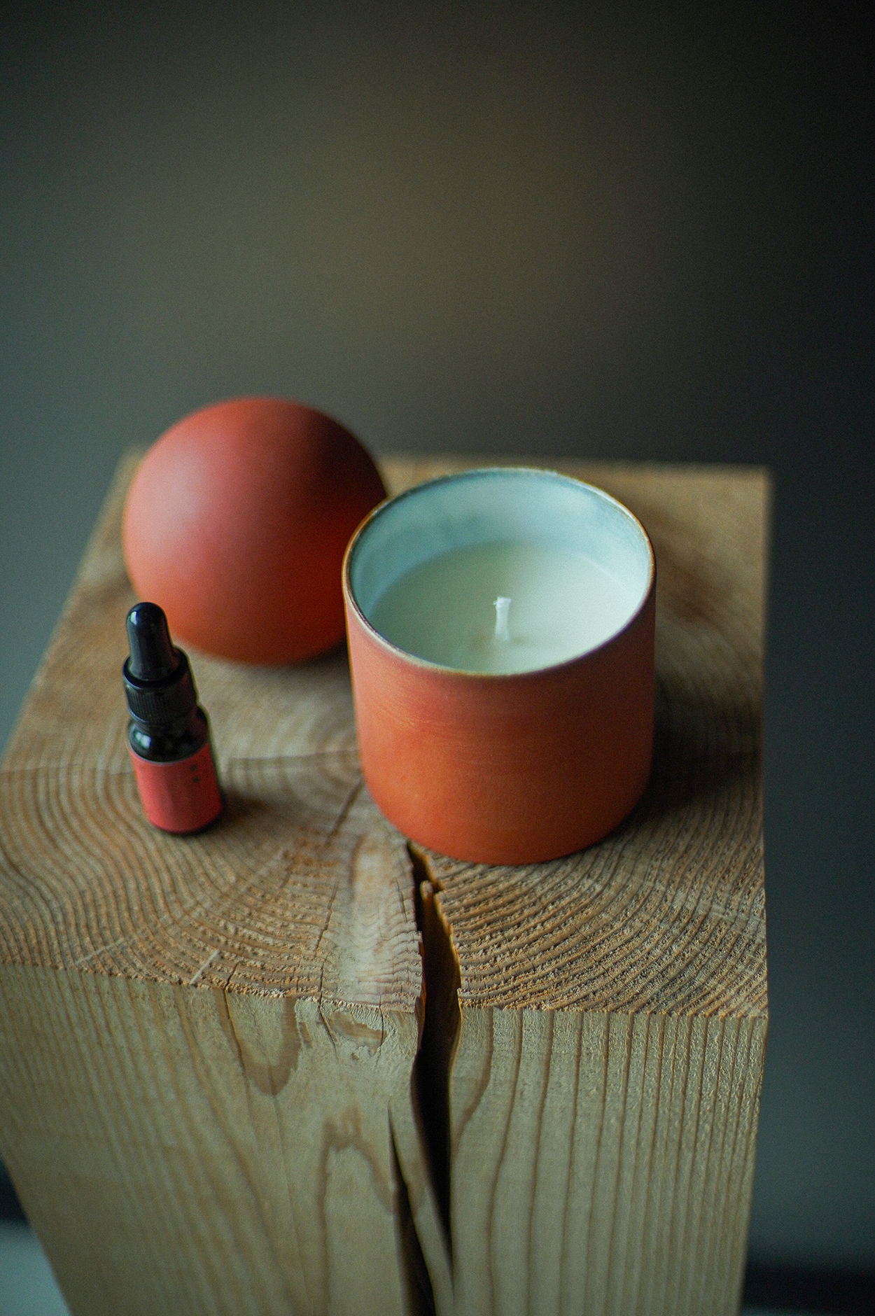 NOTA&designが制作した信楽の土を使ったオリジナル陶器製容器に100%ソイワックスを注いだコンテナソイキャンドル。香りは植物が根を張り、命を育む源である「土」の持つ香りをイメージし、静けさとあたたかさが宿る静かな余韻を感じる香りに。