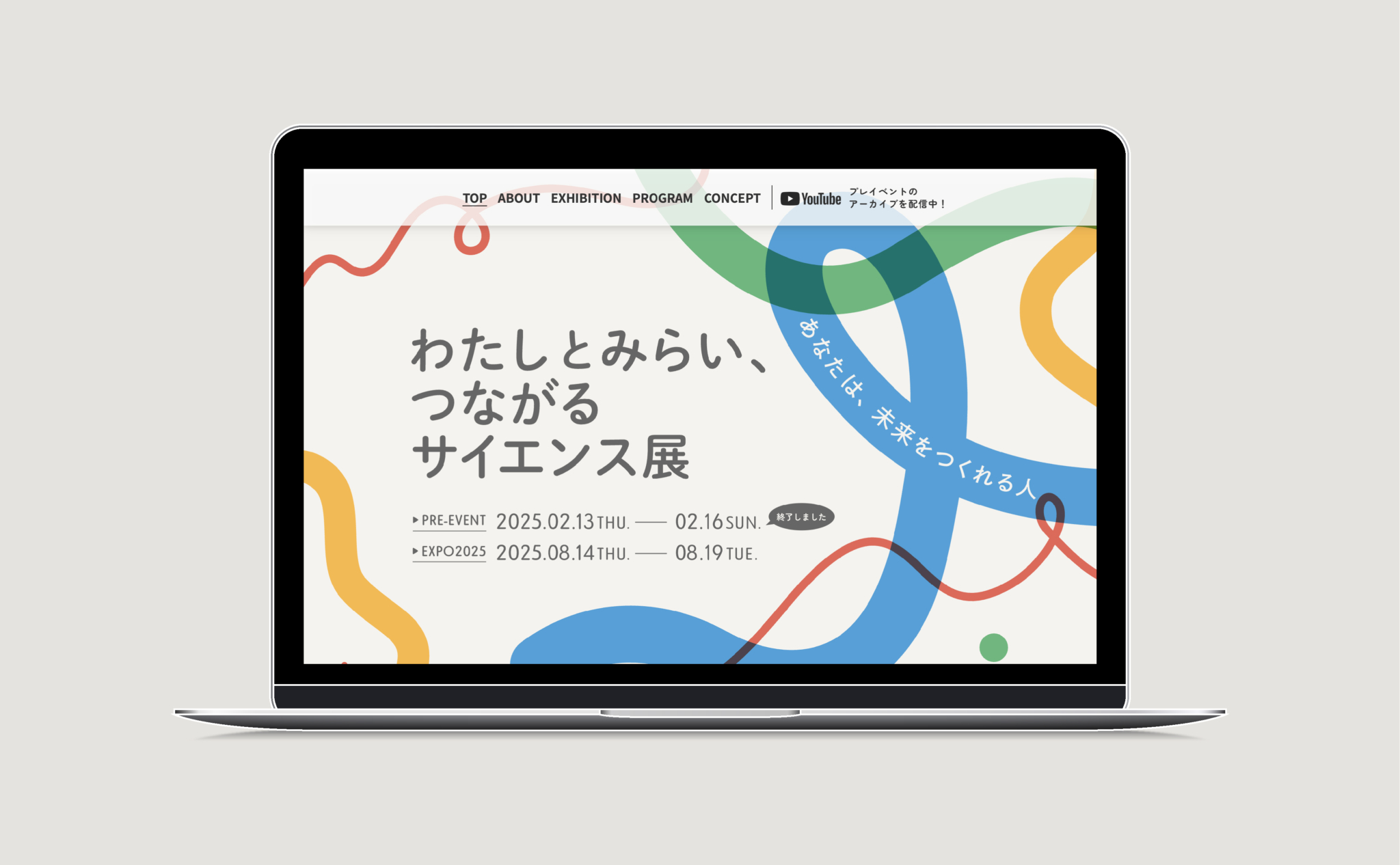 文部科学省が主催する大阪・関西万博のプレイベント「わたしとみらい、つながるサイエンス展」が東京にて開催されました。株式会社三菱総合研究所とともに準備を進め、grafはコンセプトから展示企画、デザインシステム構築、空間設計、コミュニケーションデザインなどのクリエイティブ開発全体を担当しました。