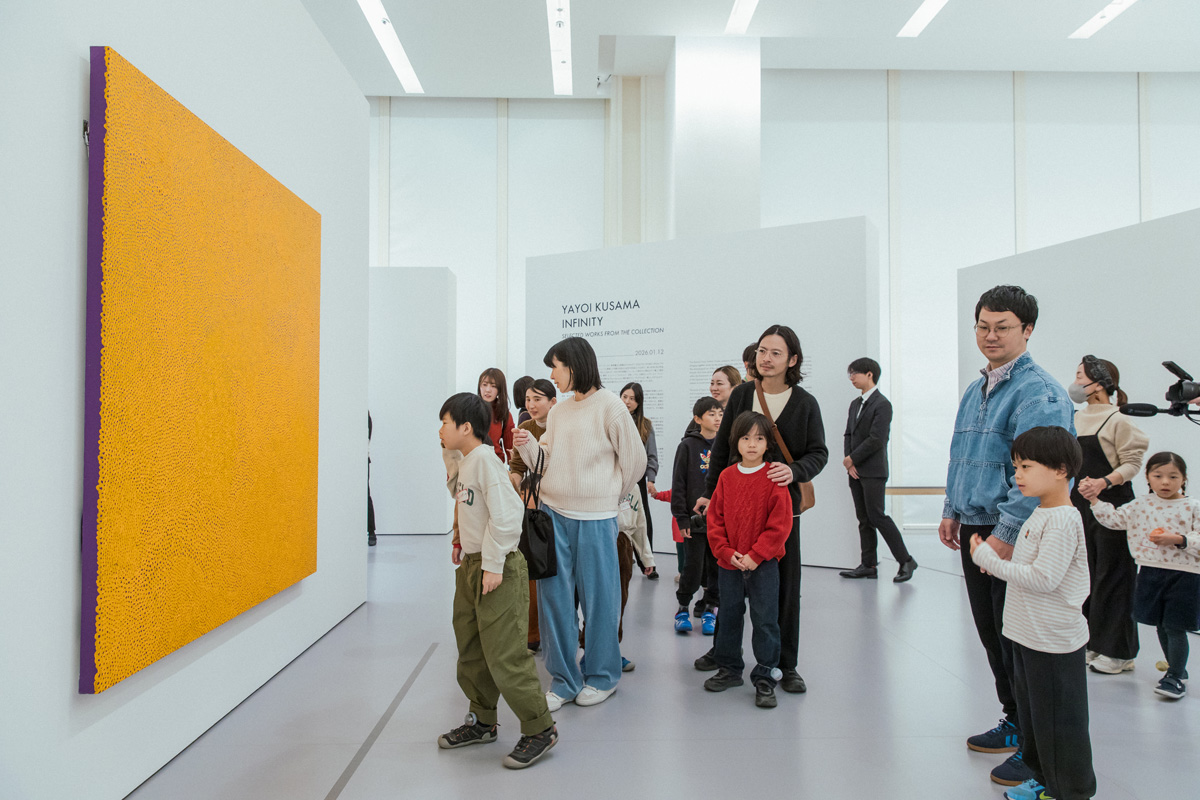 前回に続き、エスパス ルイ・ヴィトン大阪で開催中の、草間彌生「INFINITY – SELECTED WORKS FROM THE COLLECTION」展にあわせたワークショップを実施。ゲスト講師には、音楽人類学者・DJの矢野原佑史を迎え、会場内に展示されている作品のモチーフやリズムを手がかりに、音のイメージへと変換していくセッションを行いました。